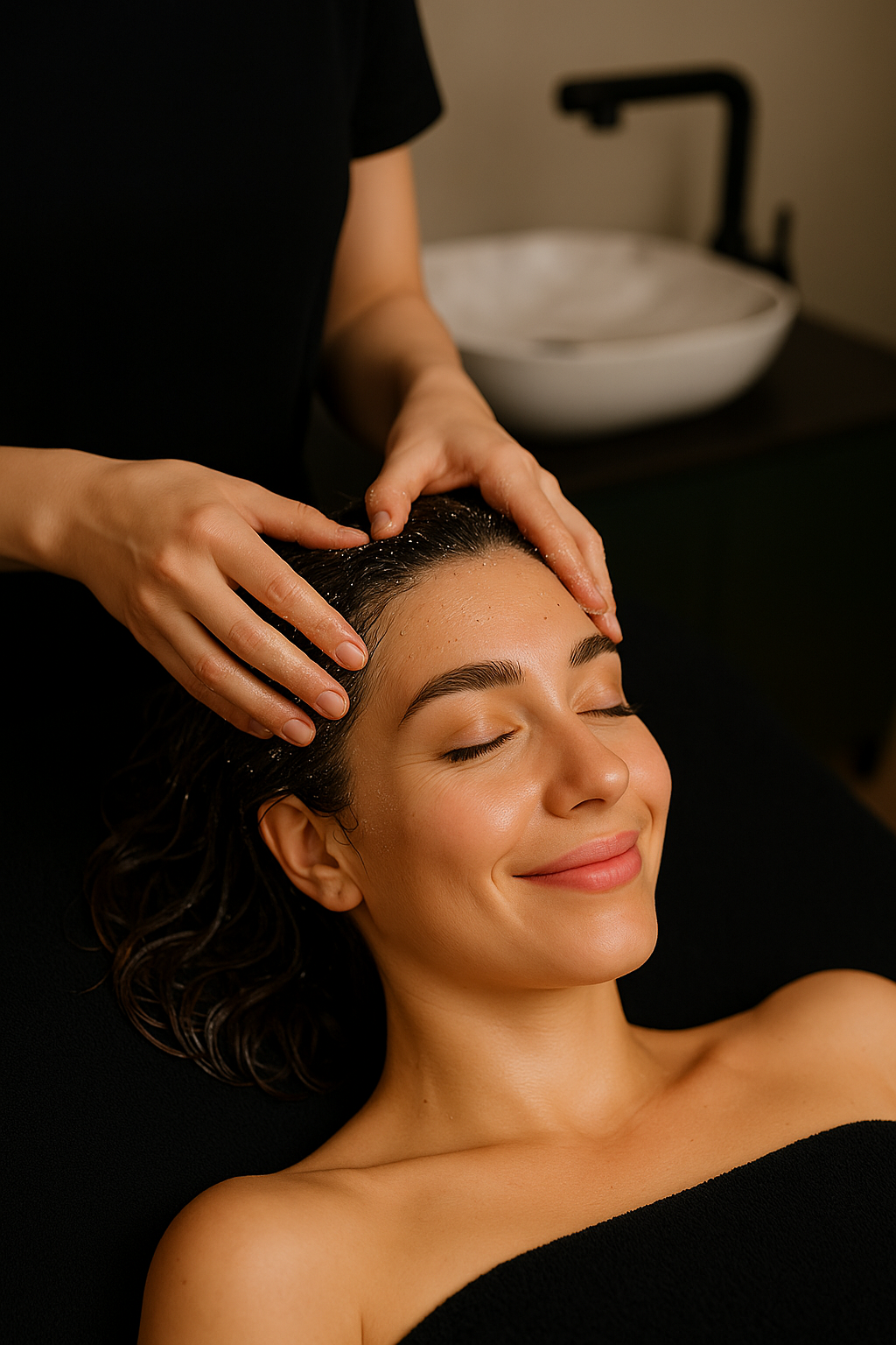 Este paso, acompañado de tónicos y lociones específicas recomendadas tras el diagnóstico, convierte la higiene capilar en un ritual de regeneración profunda: limpia, oxigena, fortalece y prepara el terreno para que el cabello crezca con más vitalidad.